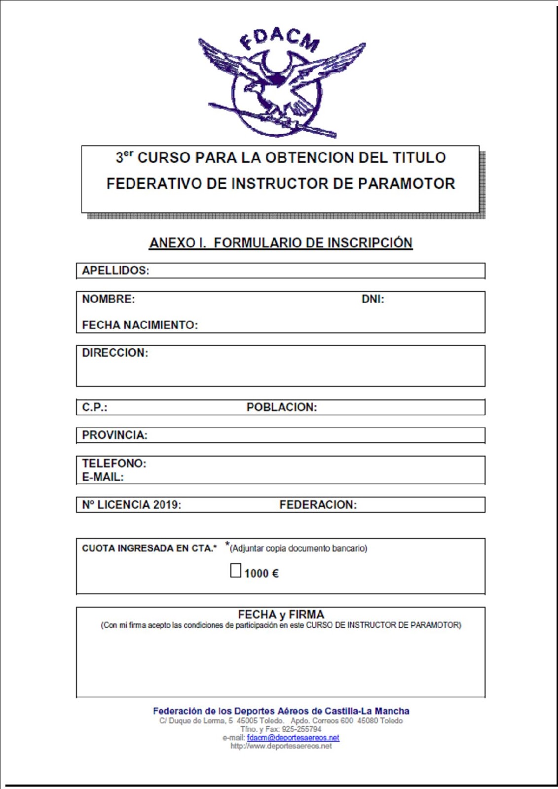 CURSO DE INSTRUCTORES DE PARAMOTOR FDACM