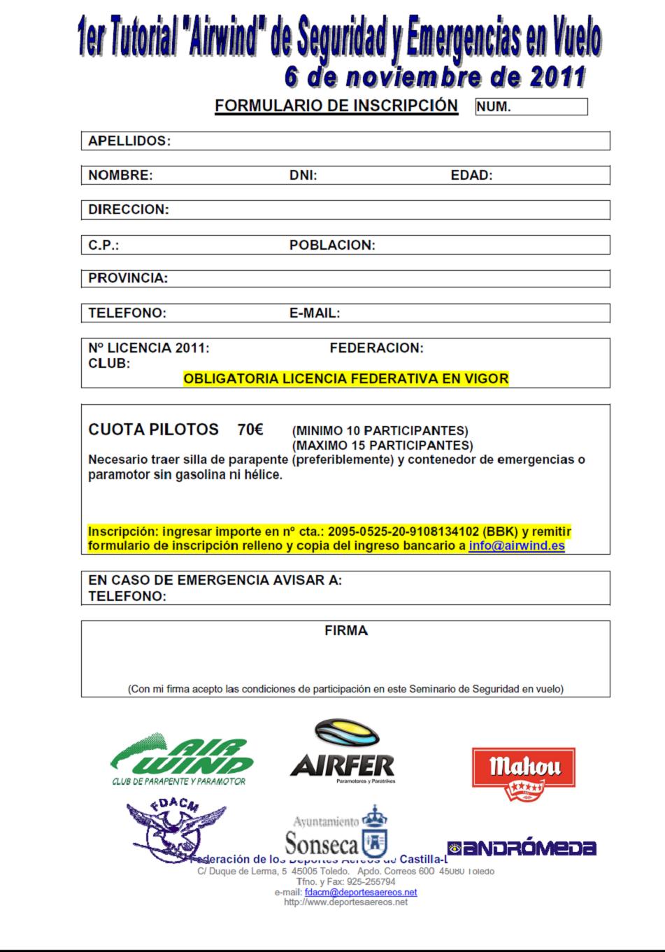 Solicitar formulario de inscripción en info@airwind.es o descargatelo aquí: